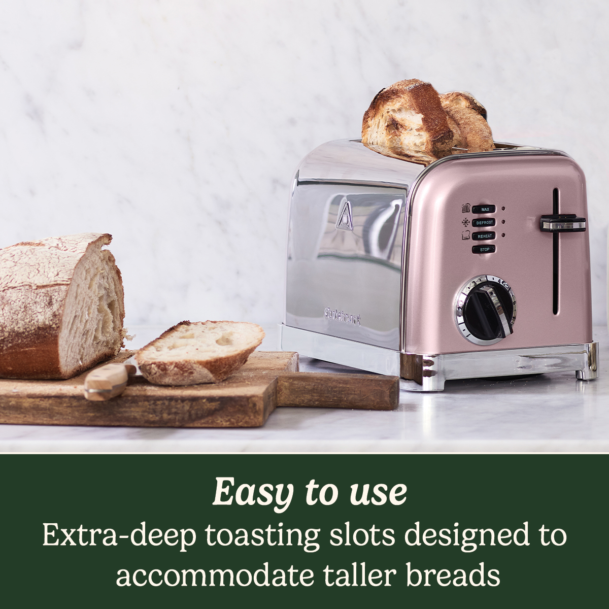 Deze stijlvolle roestvrijstalen broodrooster voor 2 sneetjes maakt deel uit van onze Style Collection en zal een subtiel vleugje kleur toevoegen aan je keuken.