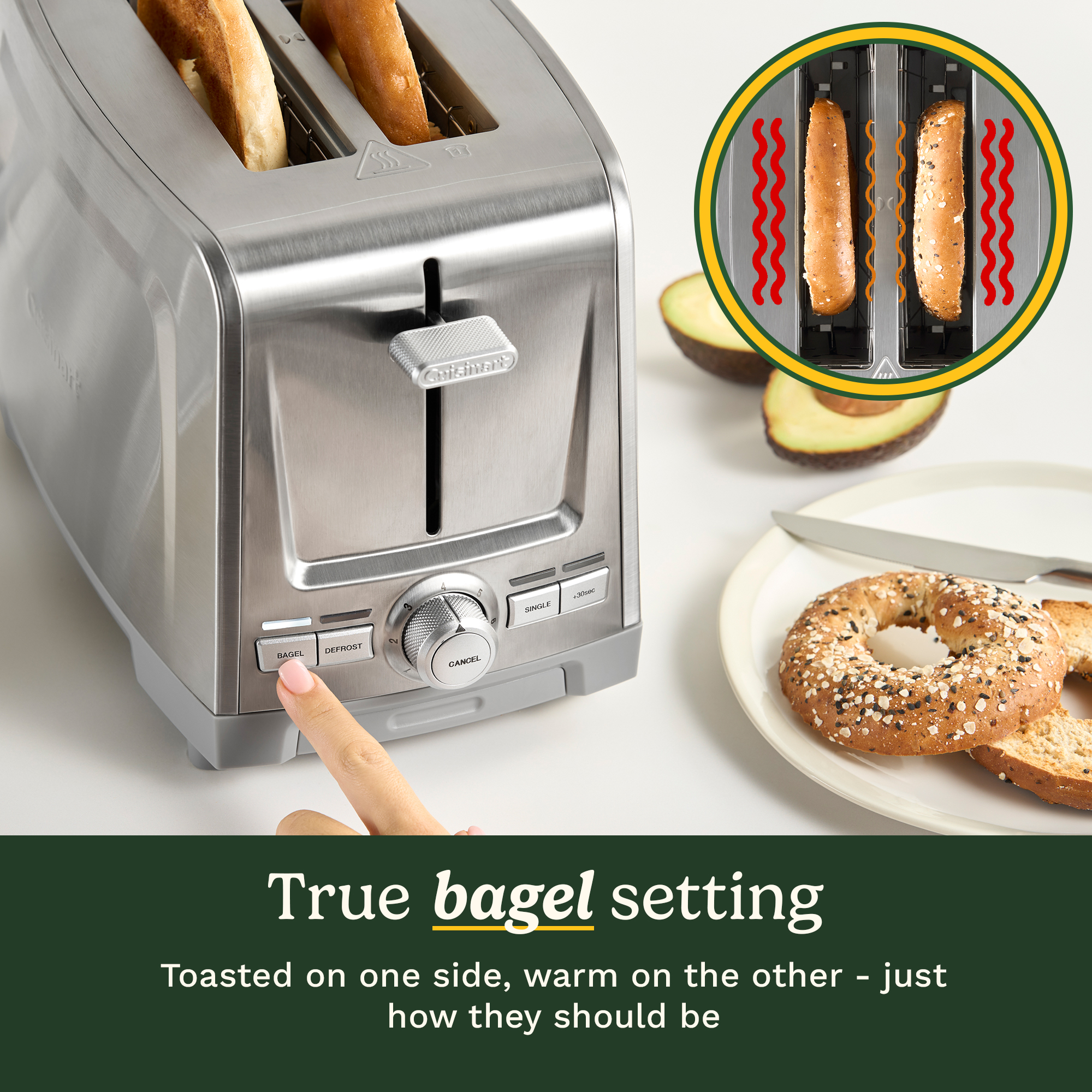 - True bagel setting: Toasts the cut side, gently warms the crust, just how bagels like it.